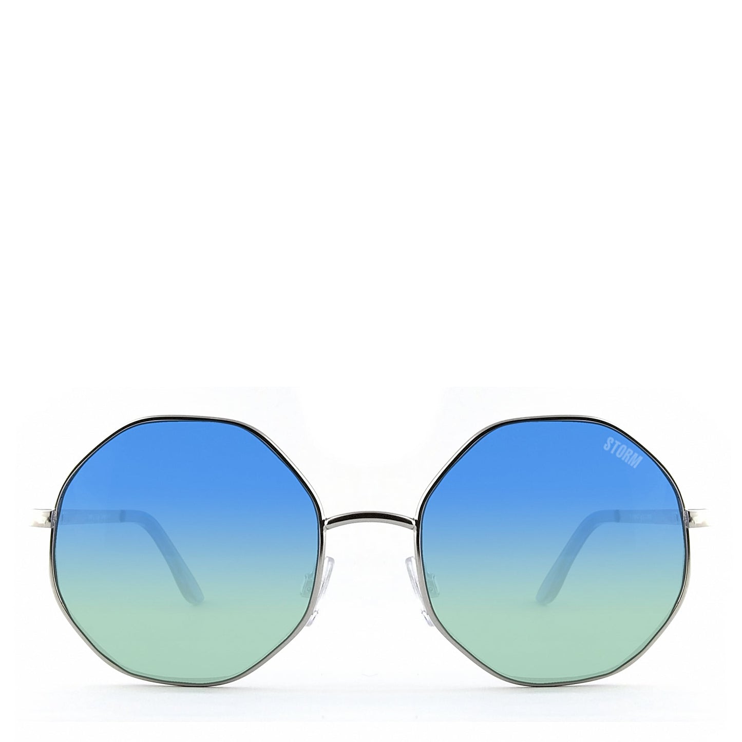STORM fashion Silver metal hexagon with blue ocean lens. Filter category 3 offering maximum UVA/UVB protection. Supplied in a STORM branded black microfiber drawstring pouch.