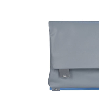 The STORM Islington is a stylish grey leather bag with a unique finish in the form of a signature blue acrylic bar which runs along the bottom edge of the bag. The Islington comes with a detachable across body strap giving you the option of wearing it on the shoulder or in hand as a clutch bag. This fold over bag features a top zip fastening with STORM embossed puller, otter zip pocket, contrasting lining and leather inside pocket. The glamorous addition to your day or evening look.