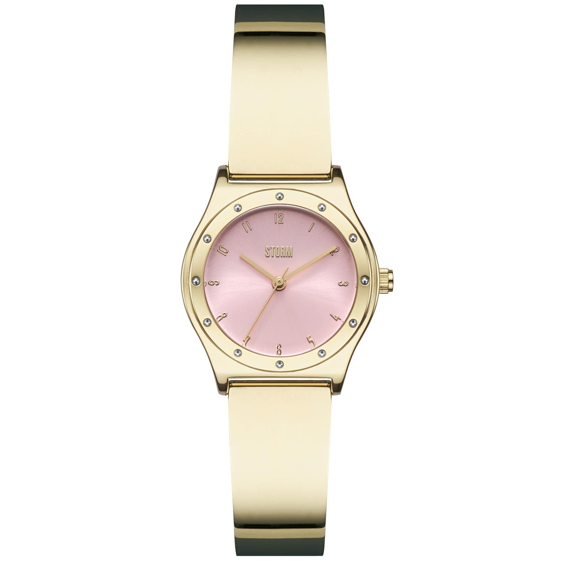 Elevate your everyday style with the STORM Marlena watch. Featuring a sleek, polished 21k gold plated stainless steel case and semi-bangle strap, it boasts a striking sunray pink dial for a bold, modern twist. With 12 steel stud markers and 50M water resistance, this edgy timepiece perfectly blends fashion and function for daily wear.