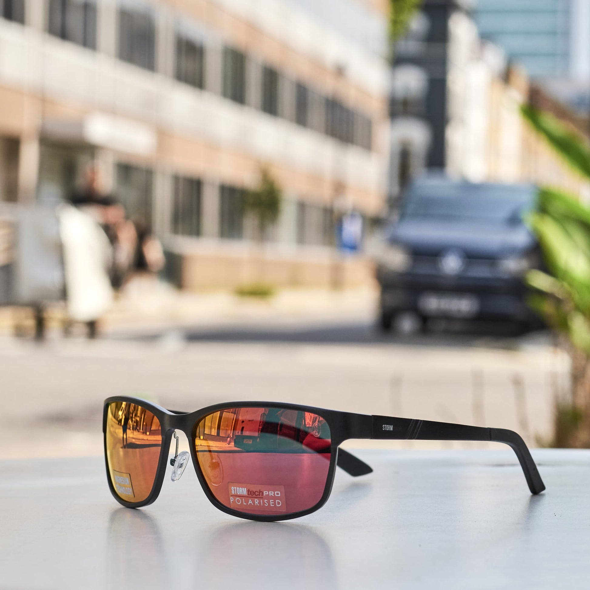 The polarised mirrored red lenses are designed to reduce glare from reflective surfaces such as water, snow, tarmac & glass while offering maximum UVA/UVB protection and so are ideal for all kinds of outdoor pursuits as well as day to day fashionable wear.