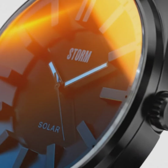 Powered by solar movement, the STORM Solaron combines cutting-edge technology with bold contemporary style. Crafted from high-grade IP plated stainless steel, this sleek timepiece features a striking 3D dial beneath STORM’s signature lazer red glass. The Solaron charges naturally from any light source, offering long-lasting performance without the need for battery changes. Luminous hands ensure visibility in low light, while 50 metres of water resistance makes it perfect for everyday wear. A fusion of innovation and modern design—distinctly STORM.